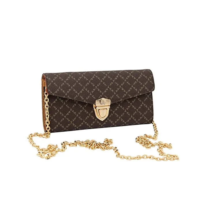 Γυναικείο πορτοφόλι σε καφέ χρώμα, με αλυσίδα για χιαστί.