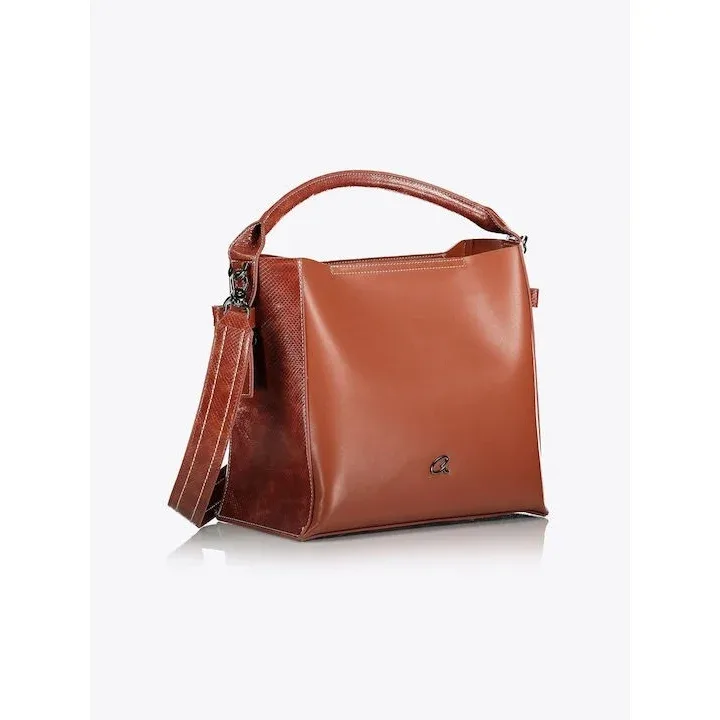 Τσάντα ώμου από τεχνόδερμα, σε συνδυασμό με κροκό λεπτομέρεια. Κλείνει με φερμουάρ και διαθέτει επιπλέον λουράκι. Επίσης, περιέχει εσωτερική μικρή τσάντα, η οποία μπορεί να χρησιμοποιηθεί σαν ξεχωριστό τσαντάκι.