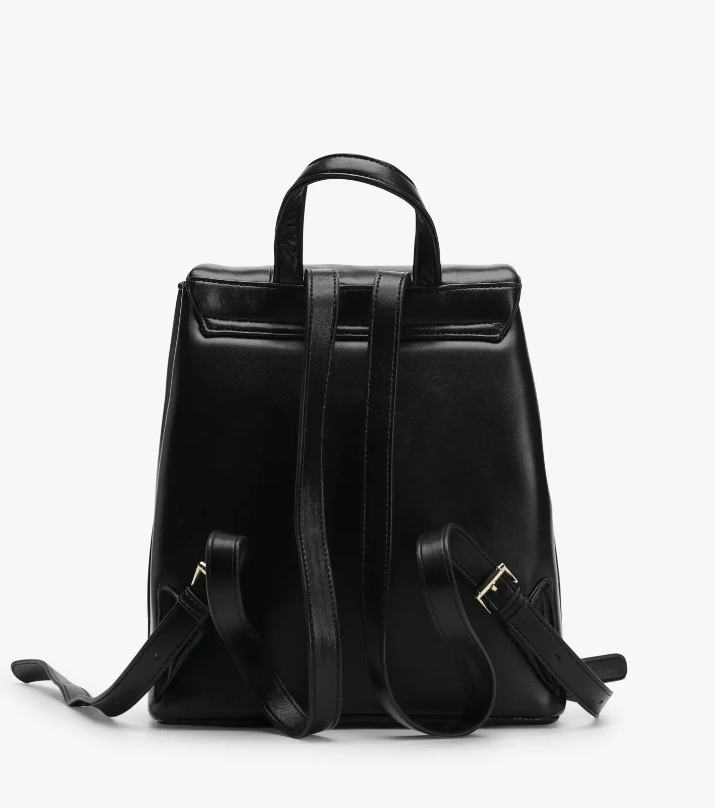 Γυναικείο σακίδιο πλάτης από τεχνόδερμα με μαλακή φουσκωτή υφή στο καπάκι. Εσωτερικά διαθέτει τσεπάκι με φερμουάρ, ανοιχτή τσέπη για οργάνωση, και είναι επενδυμένο με φόδρα. Επιπλέον, διαθέτει κούμπωμα για να διατηρεί στητή τη δομή του. Ασφαλίζει εξωτερικά με μαννητικό κούμπωμα ‘a’, ενώ οι ιμάντες πλάτης του μπορούν να ρυθμιστούν.