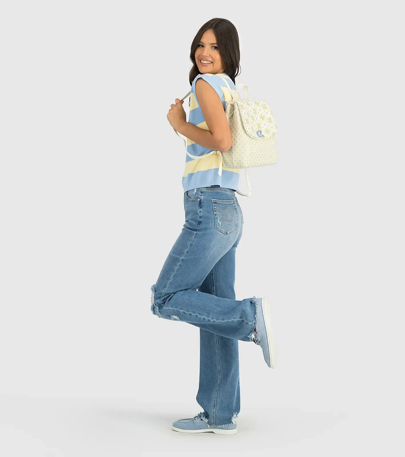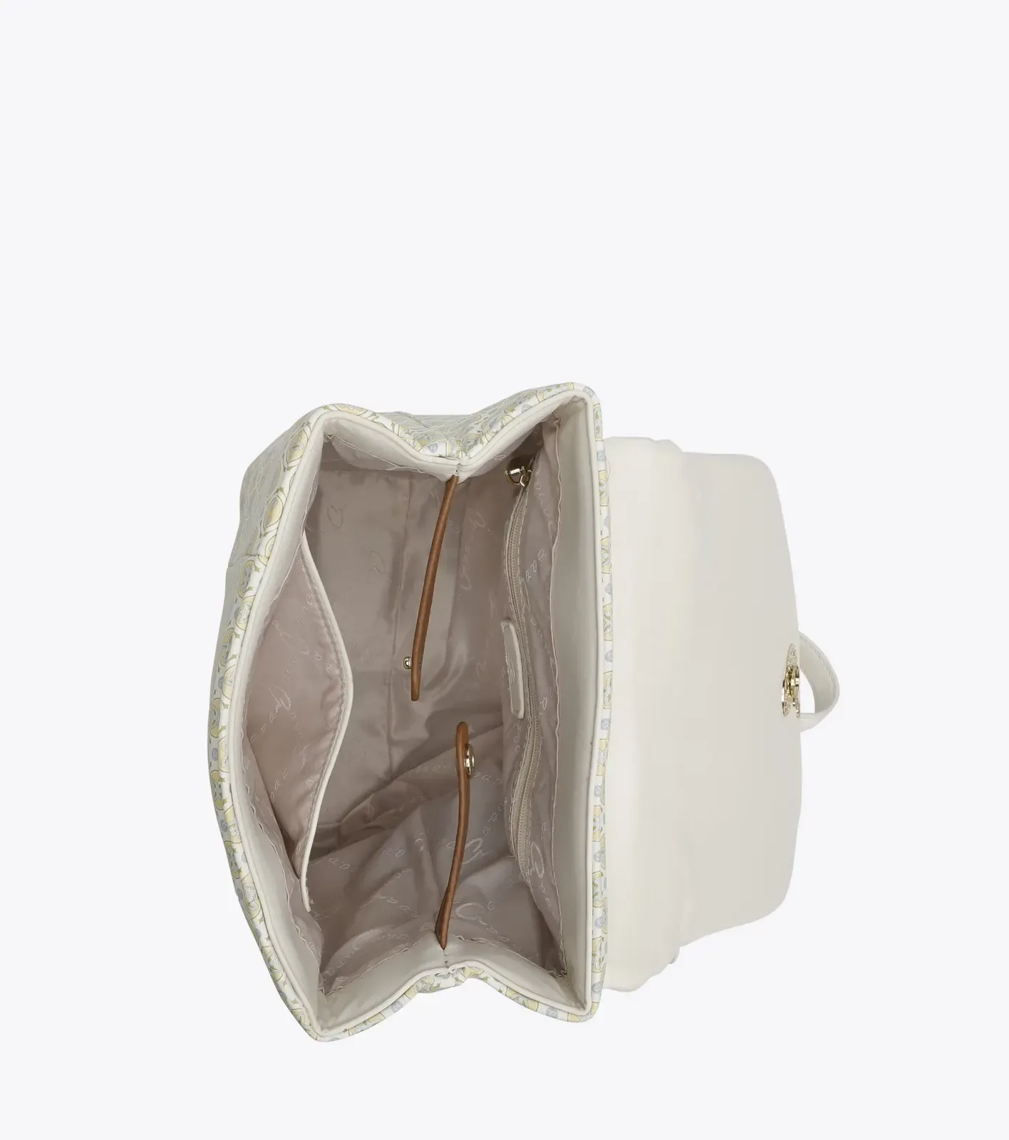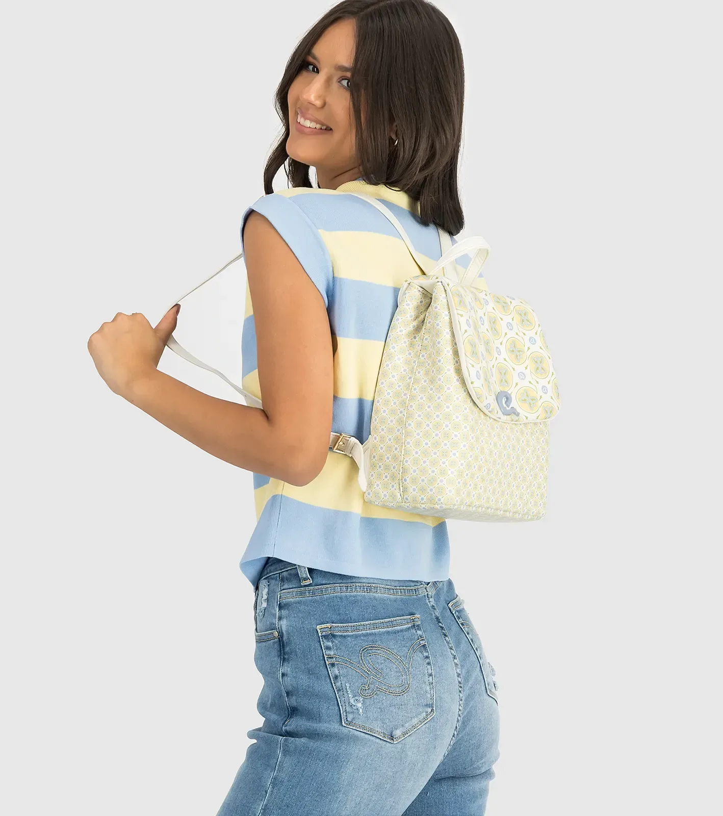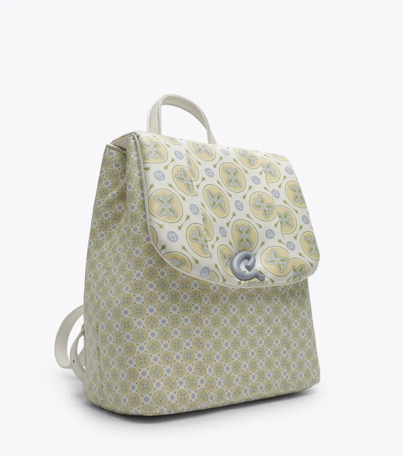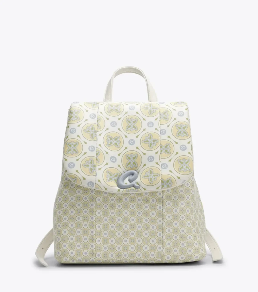 Γυναικείο σακίδιο πλάτης με τυπωμένο τεχνόδερμα Axel logo σε απαλή καλοκαιρινί κίτρινη-κρεμ απόχρωση. Εσωτερικά είναι επενδυμένο με φόδρα, περιέχει τσεπάκι με φερμουάρ και ανοιχτή τσέπη για οργάνωση. Επιπλέον, διαθέτει κούμπωμα για να διατηρεί στητή τη δομή του. Εξωτερικά το καπάκι έχει μαλακή φουσκωτή υφή και ασφαλίζει με ιδιαίτερο μανητικό κούμπωμα ‘a’, ενώ οι ιμάντες πλάτης μπορούν να ρυθμιστούν. Ιδανικό για να προσθέσει μία όμορφη καλοκαιρινή πινελιά σε ένα σύνολο.