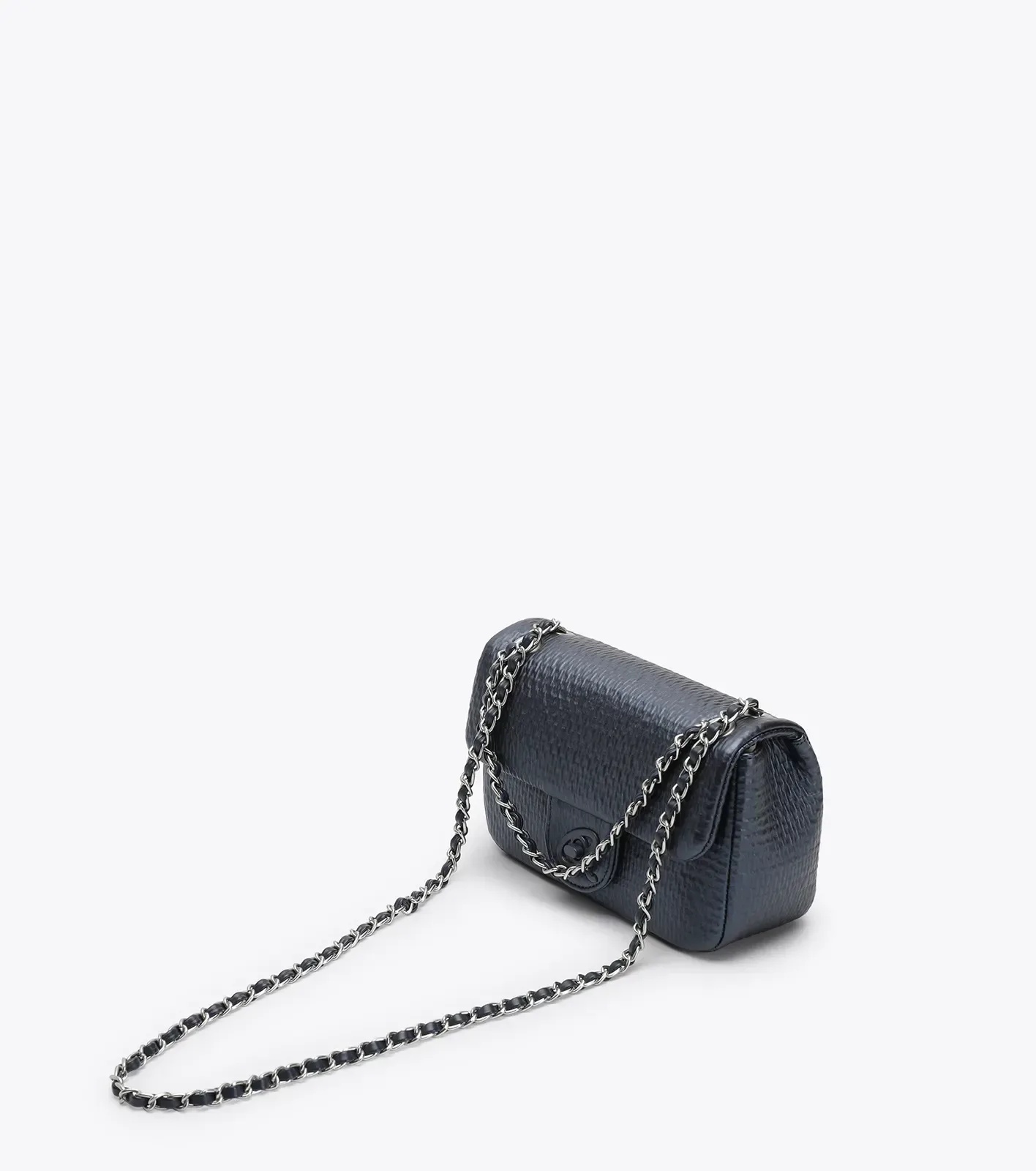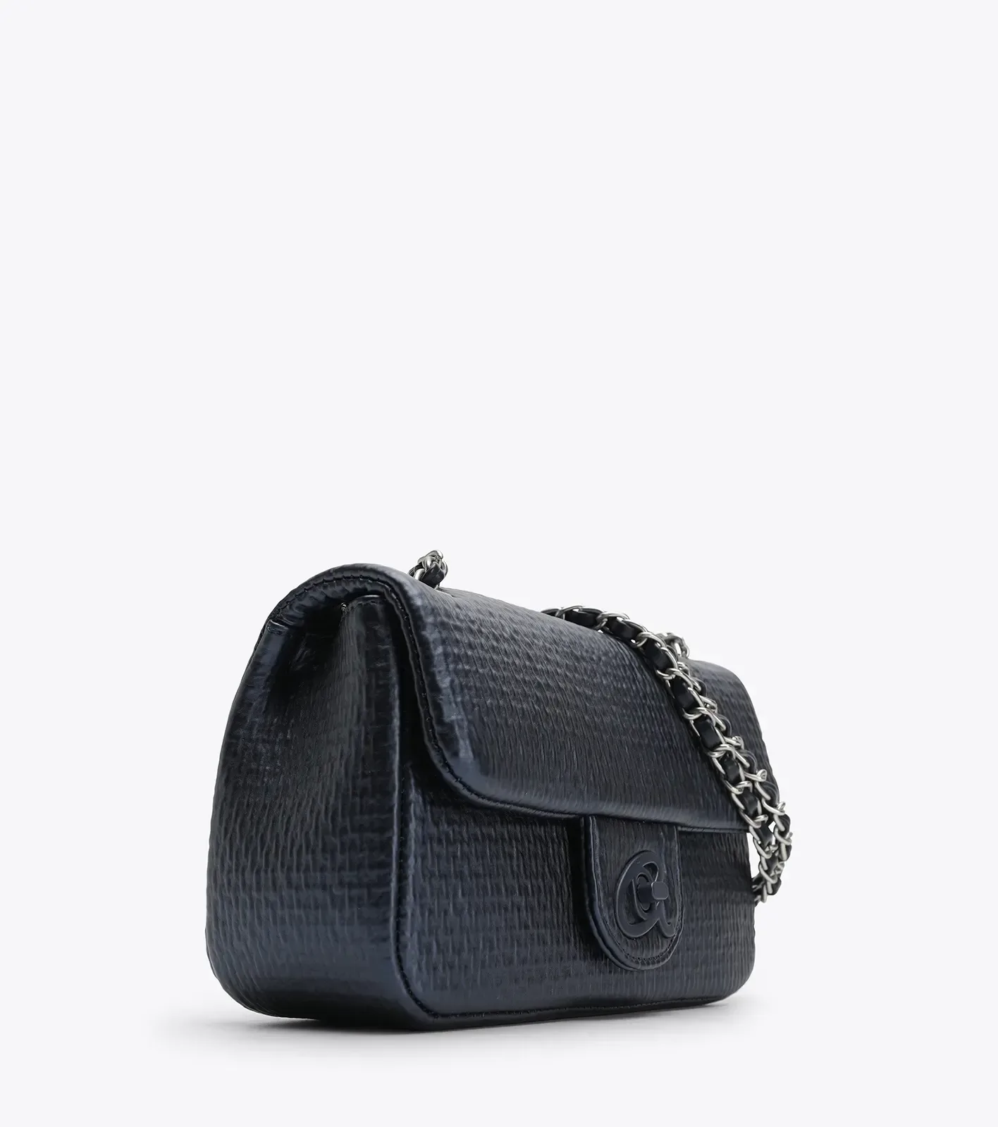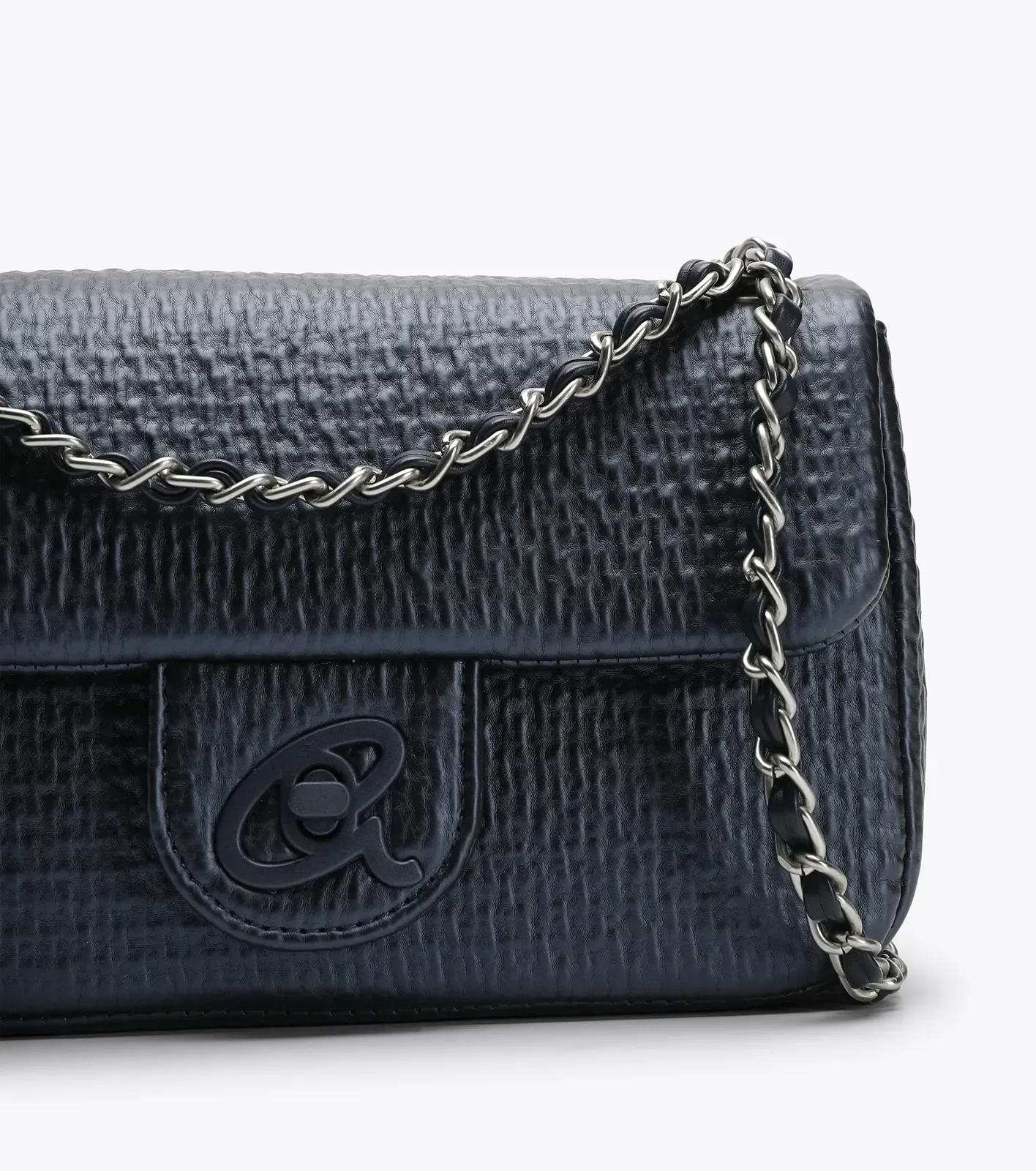 Γυναικείο τσαντάκι χιαστί Emily, κατασκευασμένο από τεχνόδερμα με ανάγλυφη υφή. Περιέχει εσωτερική τσέπη με φερμουάρ, μικρή ανοιχτή θήκη και φόδρα. Διαθέτει διπλή αλυσίδα με λεπτομέρεια από τεχνόδερμα και μπορεί να φορεθεί και ως χιαστί. Κλείνει με καπάκι και ειδικά σχεδιασμένο περιστρεφόμενο κούμπωμα ‘a’. Σε mat χρωματική απόχρωση που ξεχωρίζει.