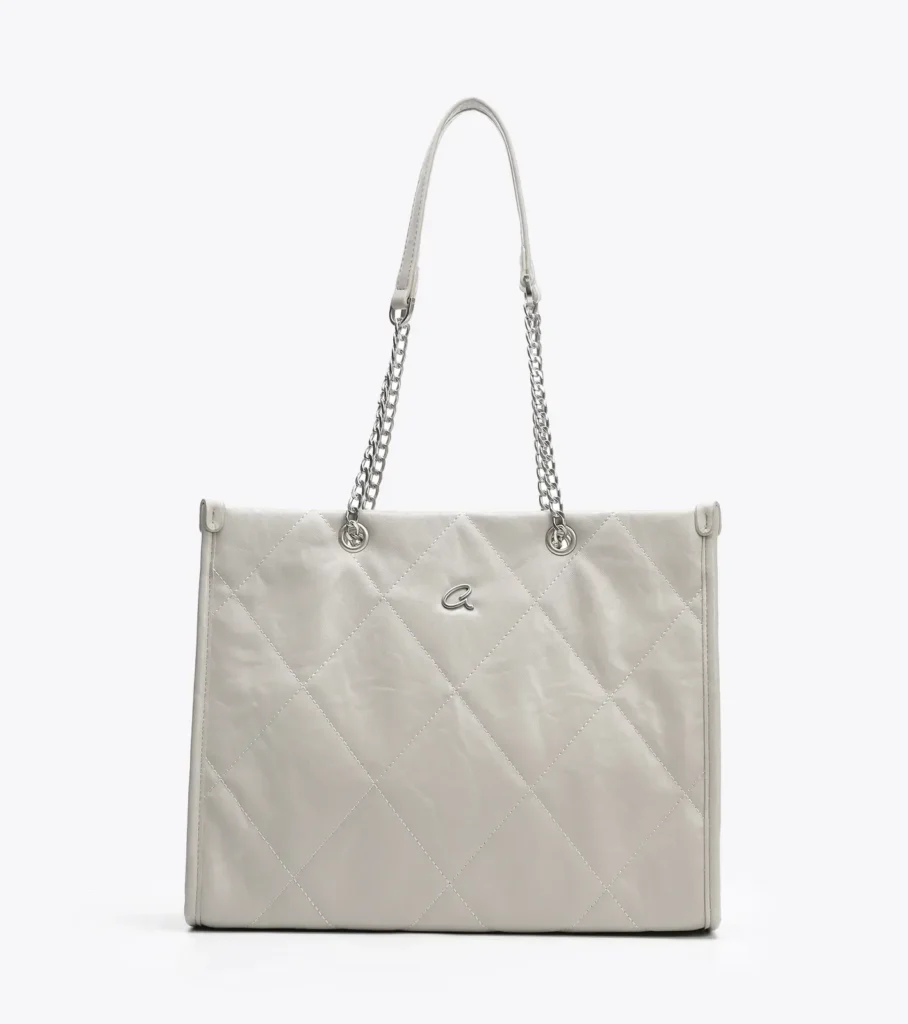 Γυναικεία τσάντα ώμου Delores κατασκευασμένη από τεχνόδερμα. Με σχέδιο από γαζιά τύπου καπιτονέ και μεταλλικές ματ λεπτομέρειες σε ασημένιο χρώμα. Τα διπλά της χερούλια αποτελούνται από αλυσίδα και τεχνόδερμα στο σημείο του ώμου για άνετη μεταφορά. Εσωτερικά διαθέτει μία τσέπη με φερμουάρ και δύο ανοιχτές θήκες ενώ είναι πλήρως φοδραρισμένη. Κλείνει με φερμουάρ. Αποτελεί μία πολύ πρακτική τσάντα με μεγάλη χωρητικότητα.