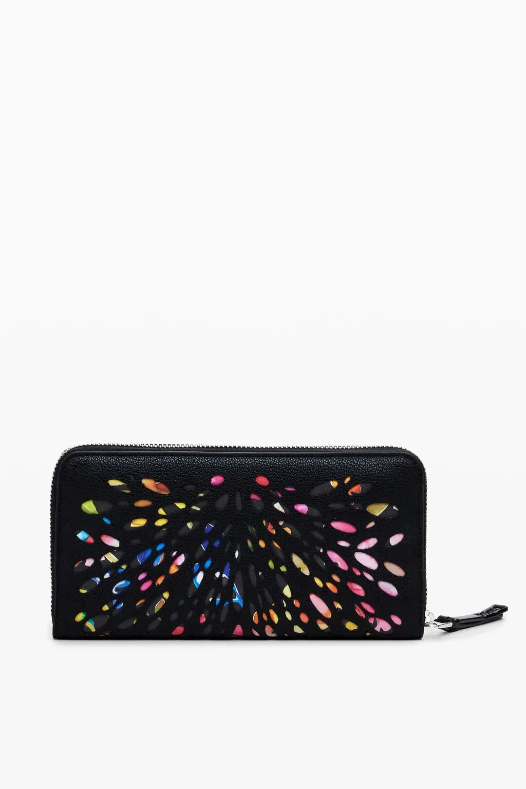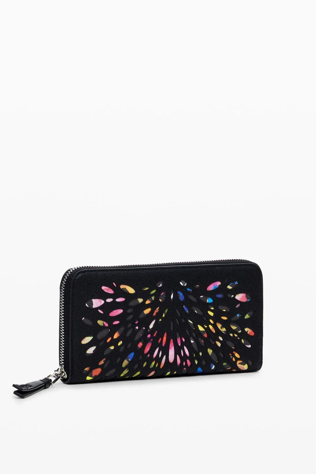 Μεγάλο διάτρητο πορτοφόλι από συνθετικο δέρμα με κλείσιμο με φερμουάρ και εκτύπωση εφέ βιτρό