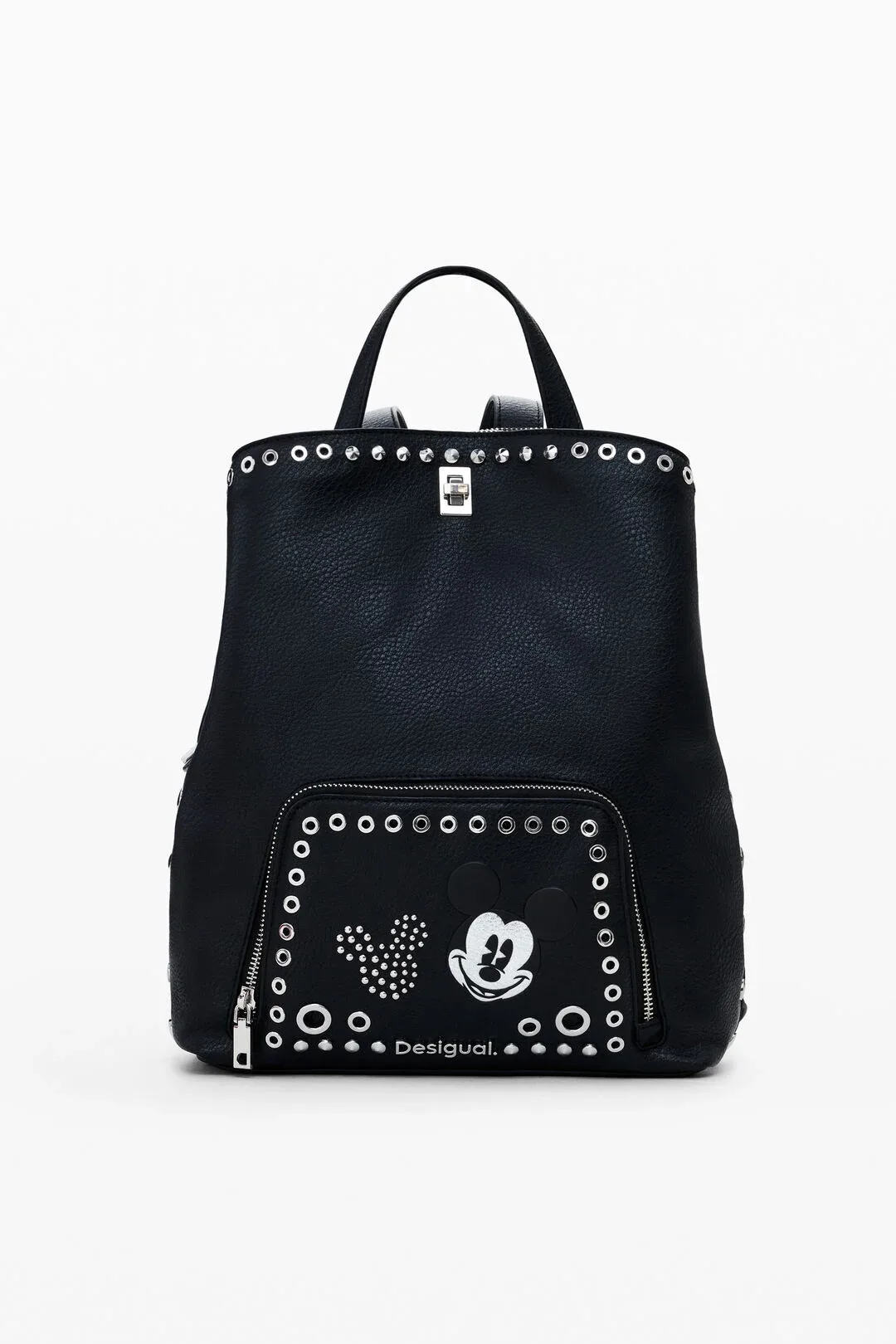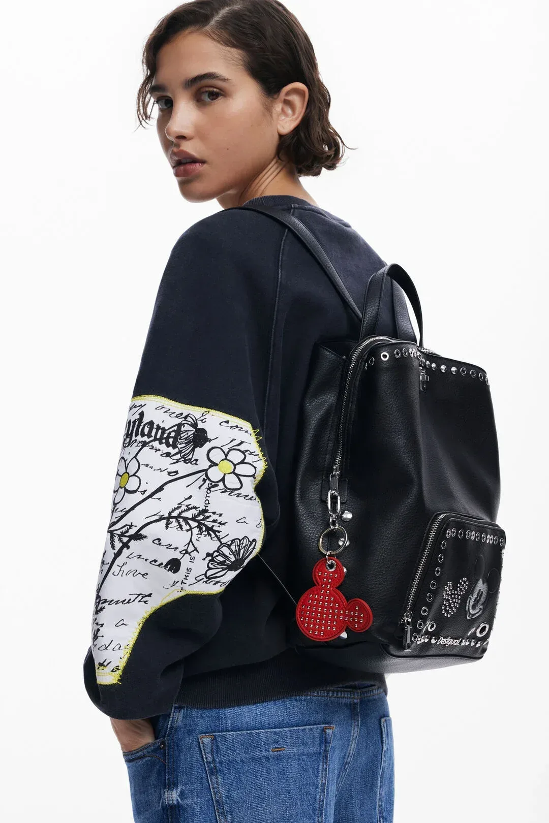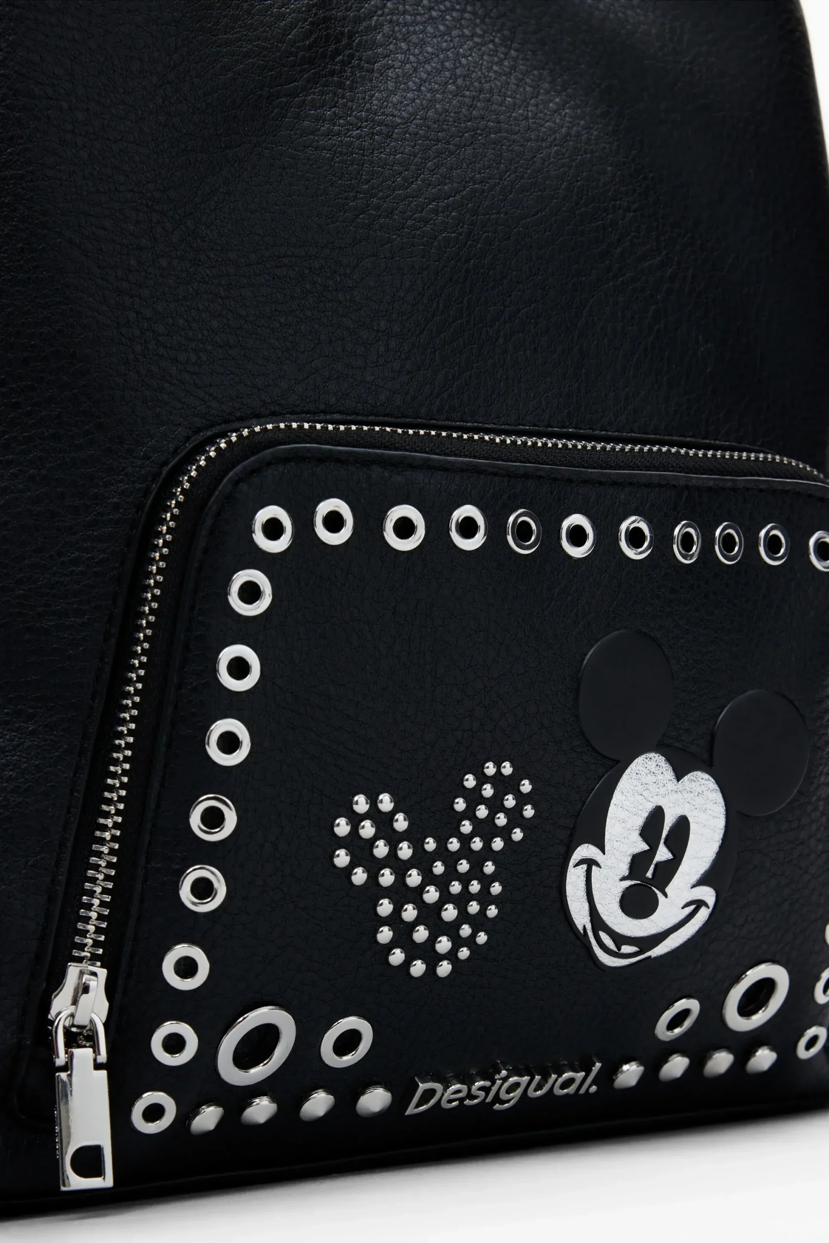 Μεσαίο σακίδιο πλάτης από ψεύτικο δέρμα με κέντημα Μίκυ Μάους™, λεπτομέρειες καρφιών και αποσπώμενο μπρελόκ.