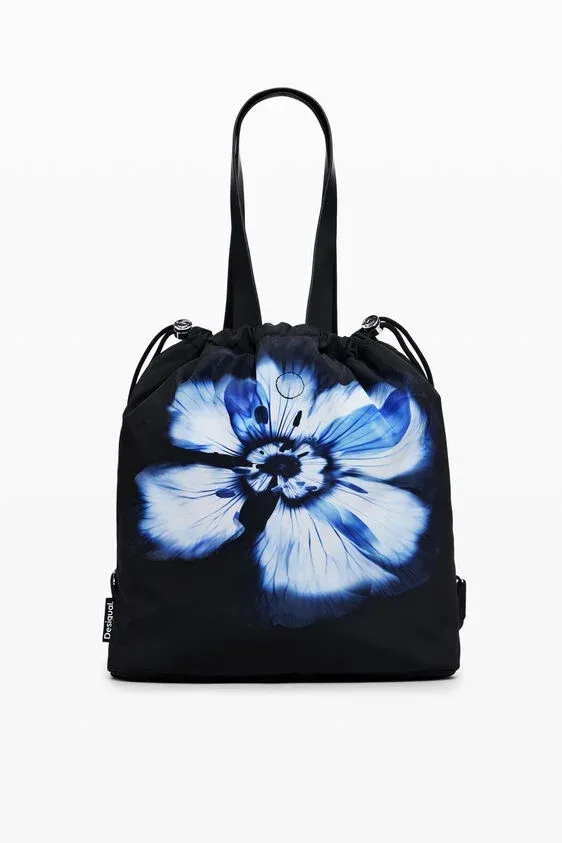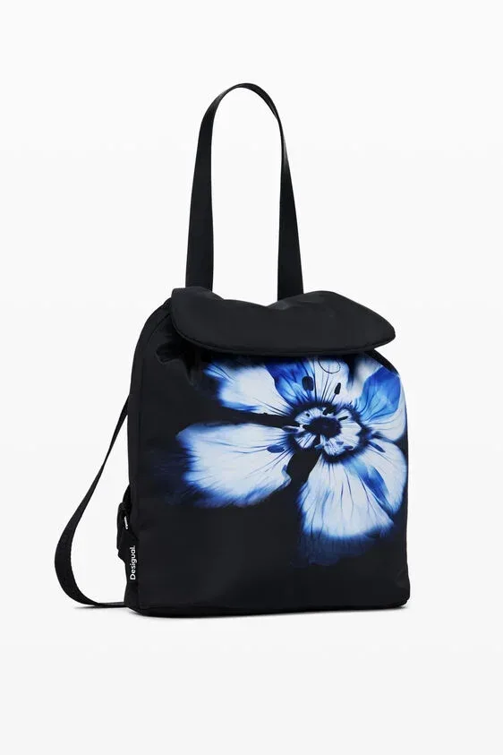 Μεσαίο σακίδιο πλάτης με floral σχέδιο και ελαστικό κλείσιμο. Μπορει να κρατειθεί  και ως τσάντα ώμου καθως διαθετει δύο λουράκια ώμου.