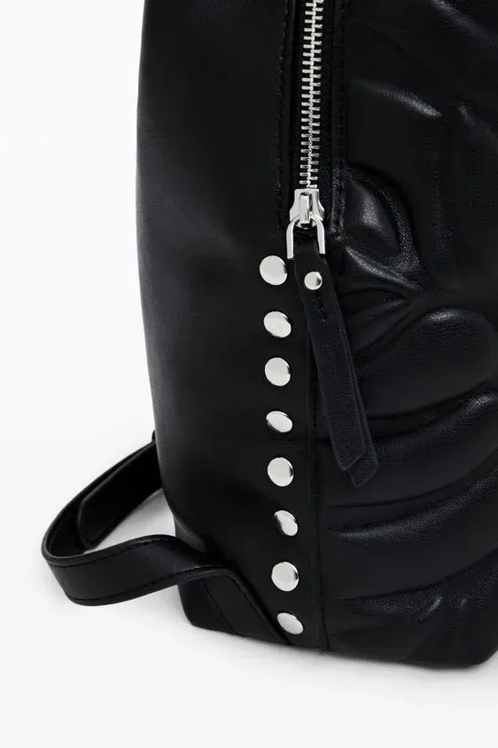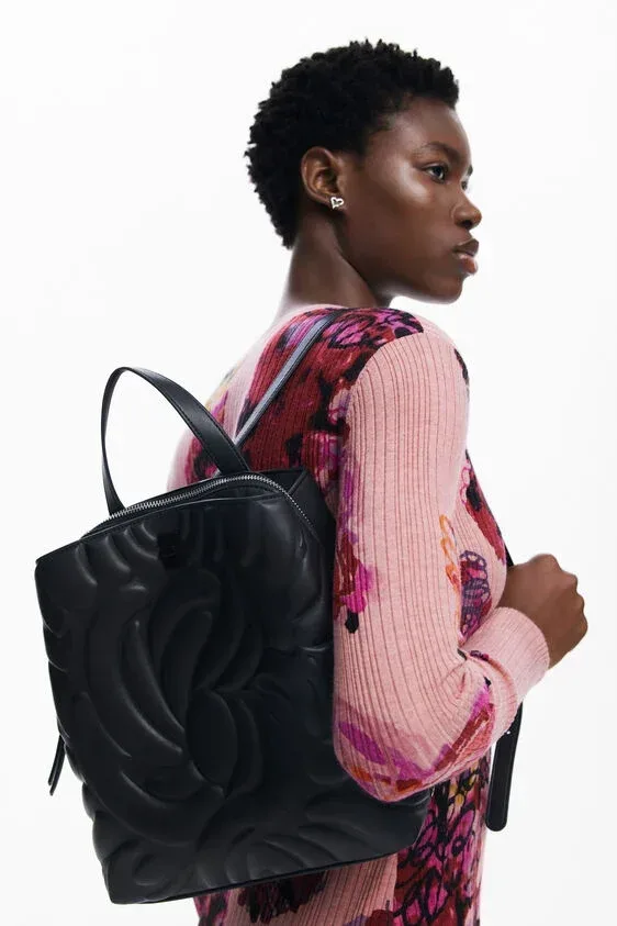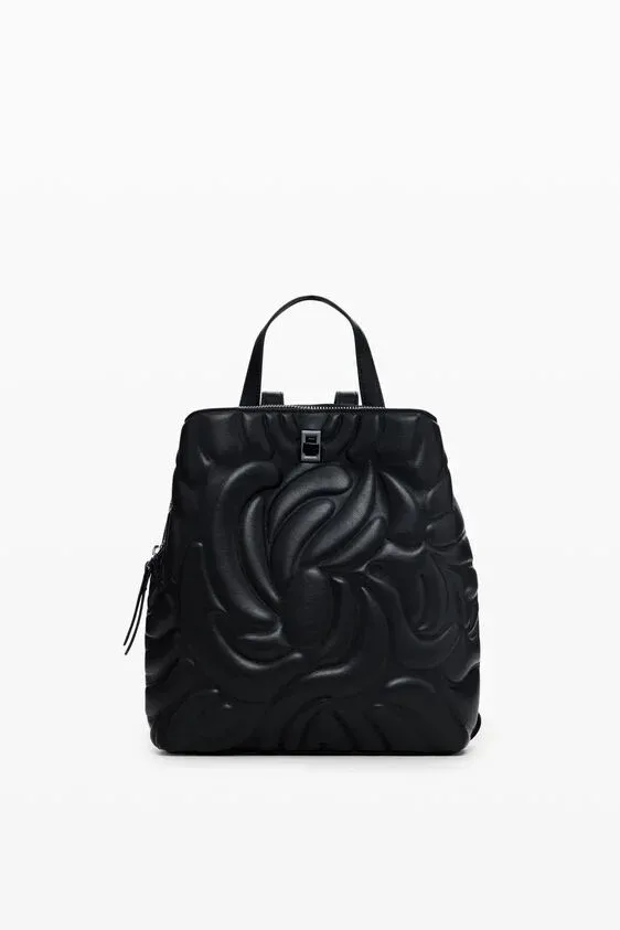 Μίνι σακίδιο πλάτης από συνθετικό δέρμα με δύο τσέπες, λαβή πολλαπλών θέσεων και ανάγλυφο φλοράλ γεωμετρικό μοτίβο