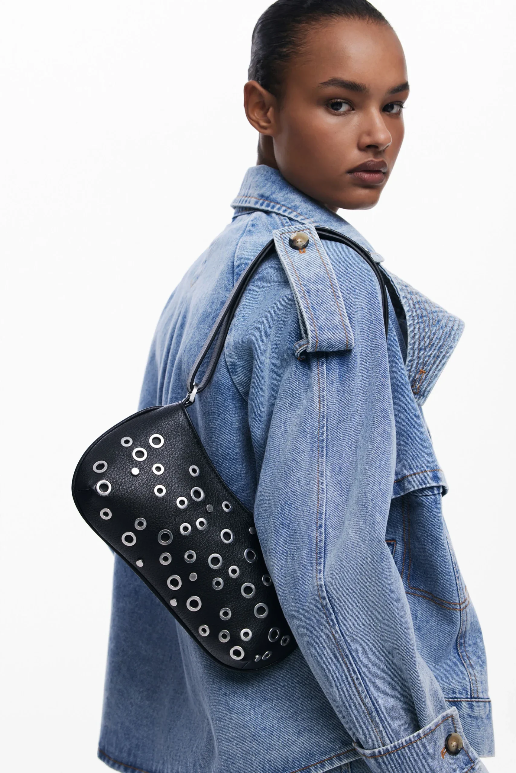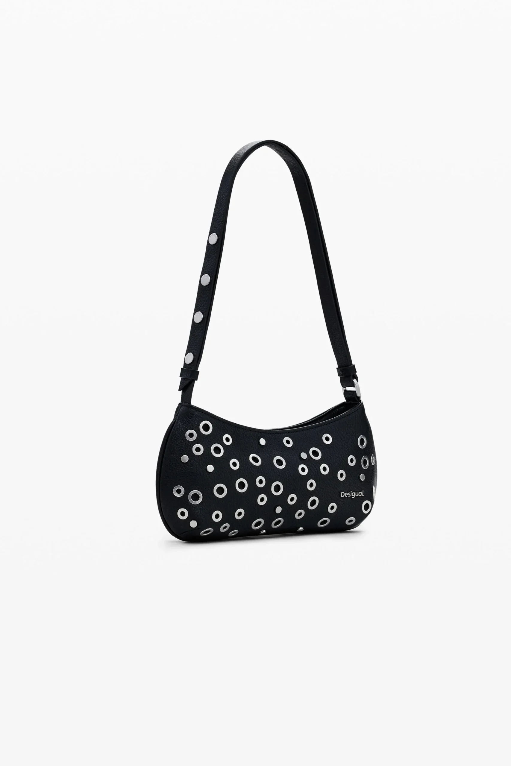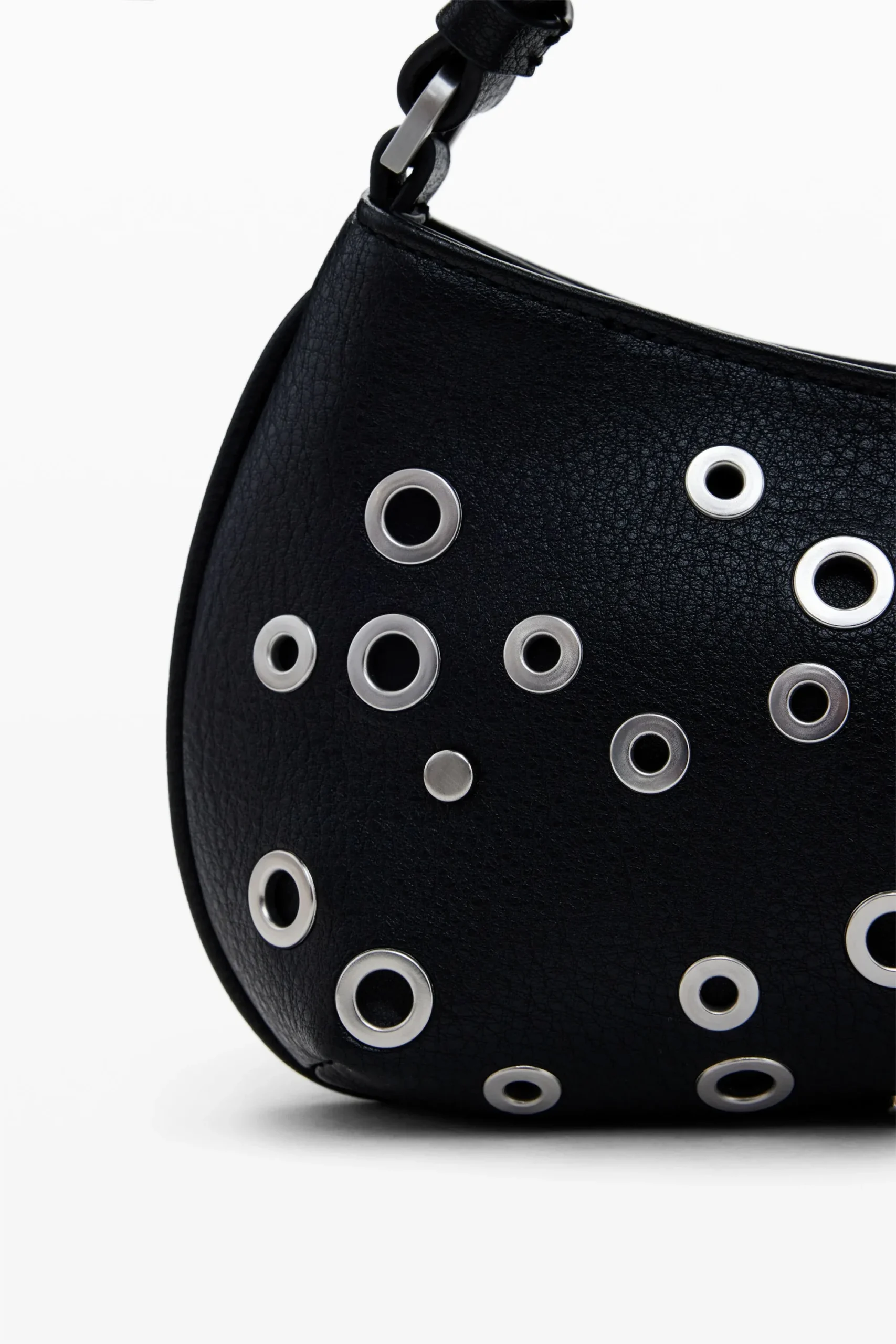 Τσάντα χιαστί σε στυλ χιαστί, σε τεχνόδερμα, κλείσιμο με φερμουάρ και μεταλλικές λεπτομέρειες με τρουκς.
