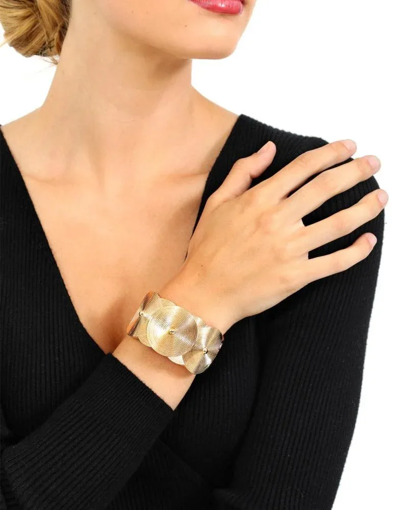 Βραχιόλι σε χρυσό χρώμα με σχέδιο κύκλους. Κατασκευασμένο από κράμα μετάλλων.