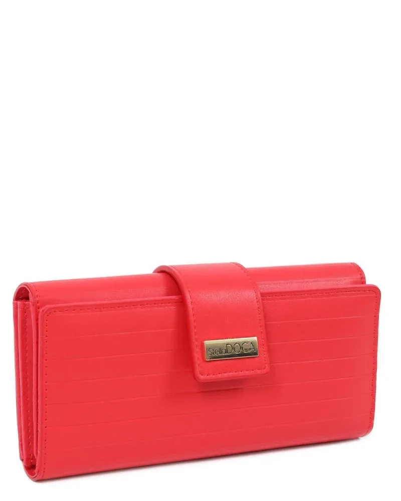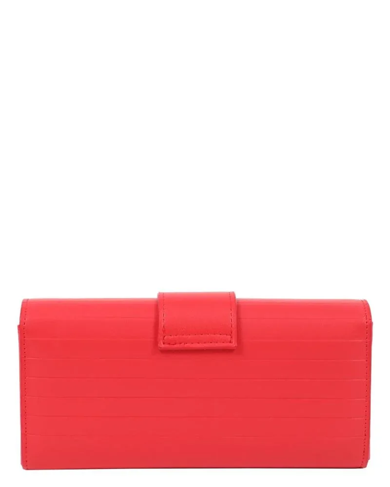 Πορτοφόλι σε κόκκινο χρώμα με ζώνη και καπιτονέ υφή. Κατασκευασμένο από συνθετικό δέρμα