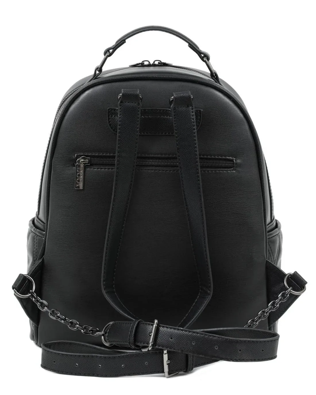 Γυναικεία τσάντα πλάτης σε μαύρο χρώμα με διπλό φερμουάρ, εξωτερική τσέπη, γεωμετρικό σχέδιο και καπιτονέ υφή. Κατασκευασμένη από συνθετικό δέρμα.