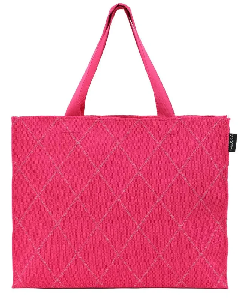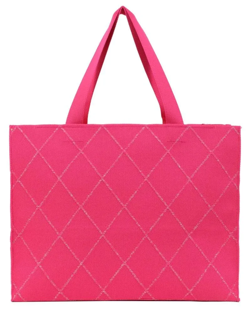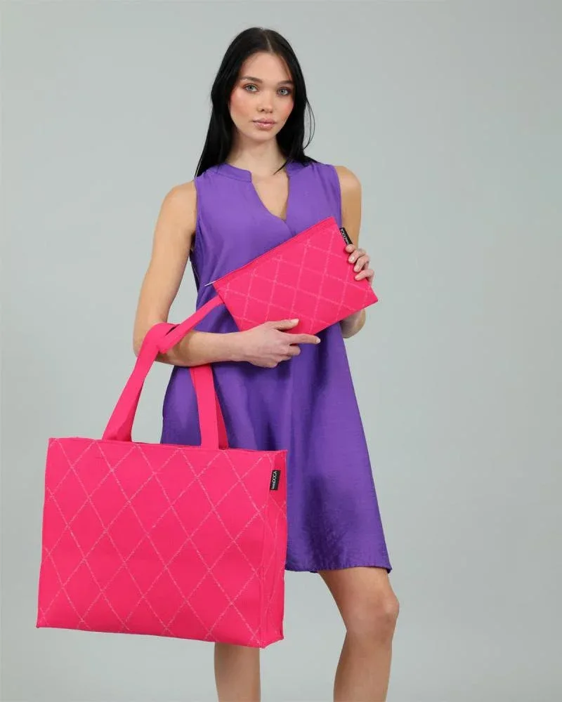 Γυναικεία υφασμάτινη τσάντα θαλάσσης σε φούξια χρώμα με καρό σχέδιο. Κατασκευασμένη από πολυεστέρα.