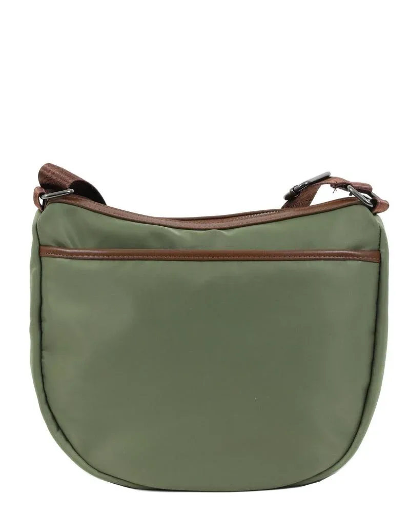 Γυναικεία τσάντα χιαστί σε πράσινο/καφε χρώμα με εξωτερική τσέπη και ρυθμιζόμενο λουράκι. Κατασκευασμένη από 90% πολυεστέρα, 10% συνθετικό δέρμα.