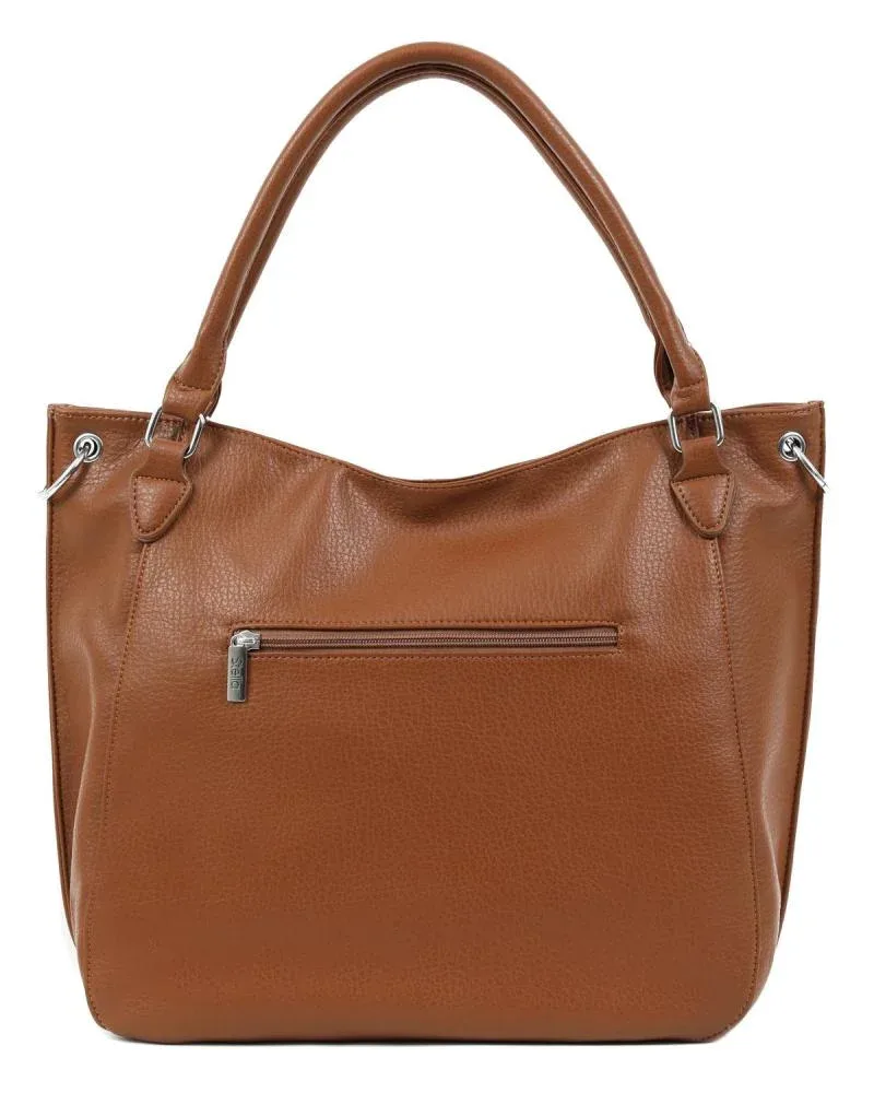 Γυναικεία τσάντα ώμου σε καμηλό χρώμα με εξωτερική τσέπη. Κατασκευασμένη από συνθετικό δέρμα. Περιέχει επιπλέον λουράκι για χρήση χιαστί.