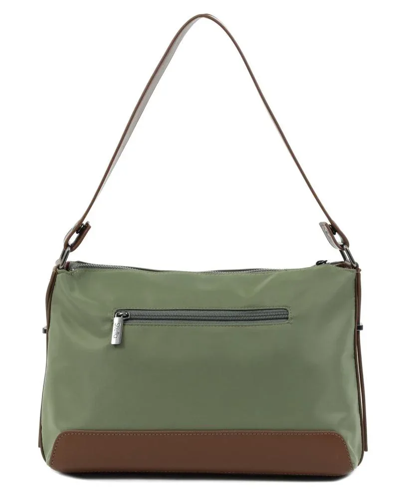 Γυναικεία τσάντα ώμου σε πράσινο χρώμα με ιδιαίτερη υφή, εξωτερική τσέπη και ρυθμιζόμενο λουράκι. Κατασκευασμένη από 90% πολυεστέρα, 10% συνθετικό δέρμα. Περιέχει επιπλέον ιμάντα για χρήση χιαστί.