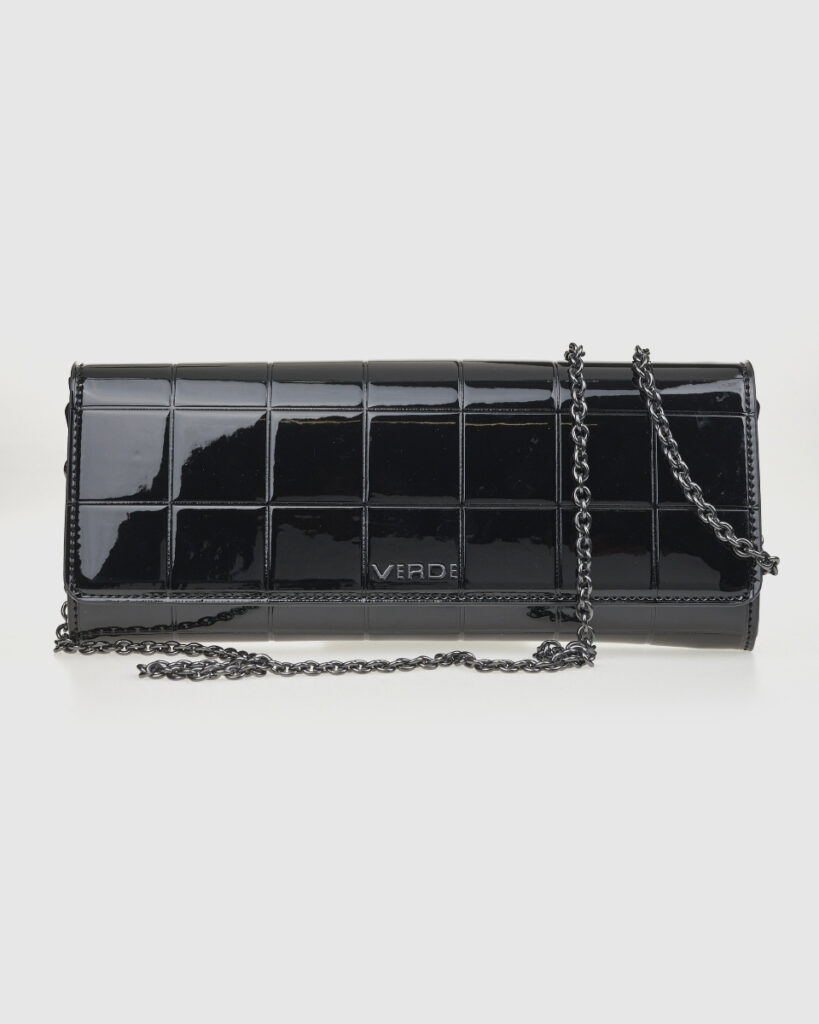 Μοντέρνο και κομψό, το αμπιγέ τσαντάκι Verde αποτελεί την ιδανική επιλογή για τις βραδινές σας εξόδους. Η glossy υφή του και η διακριτική καπιτονέ λεπτομέρεια αναδεικνύουν ένα πολυτελές ύφος που ξεχωρίζει, ενώ η μεταλλική αλυσίδα προσθέτει κομψότητα και ευκολία.