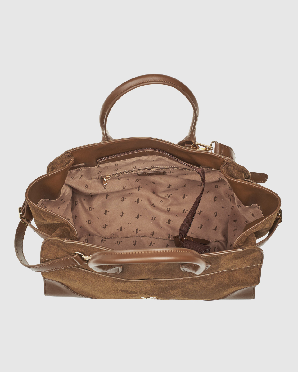 της με suede υφή και δερμάτινες λεπτομέρειες προσθέτει μια σοφιστικέ πινελιά