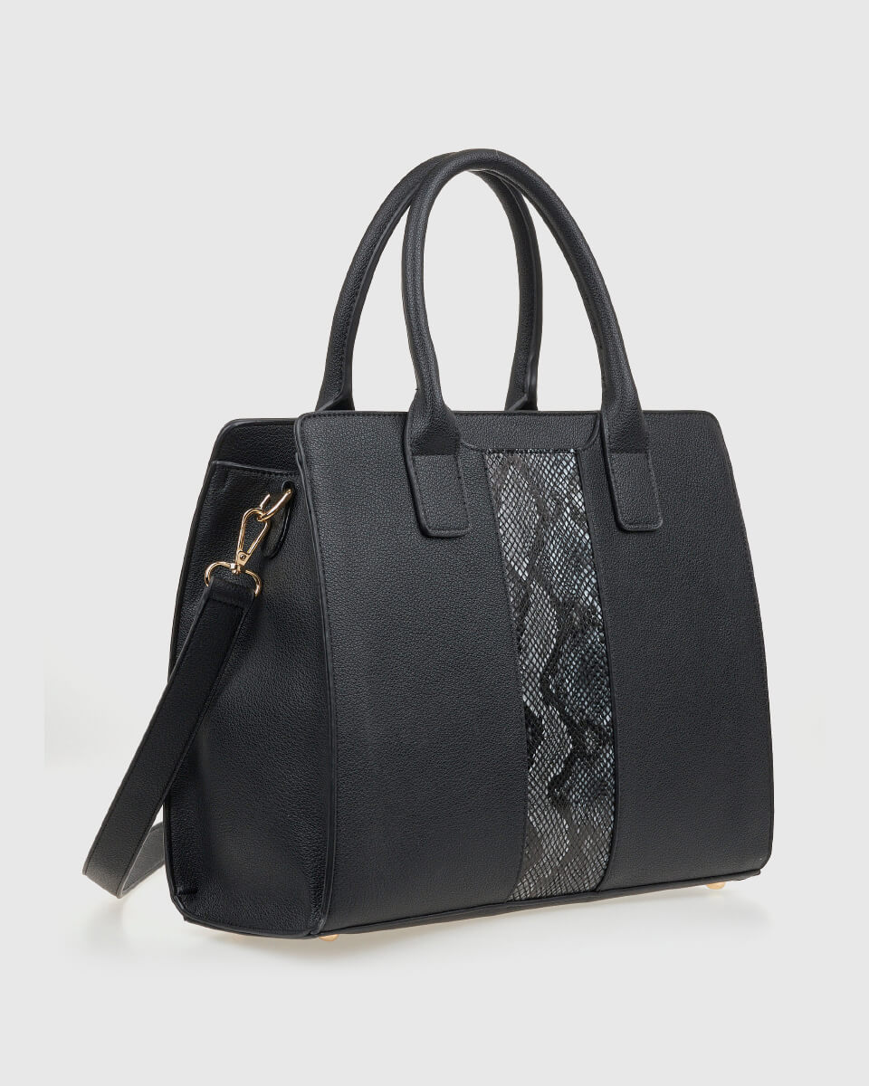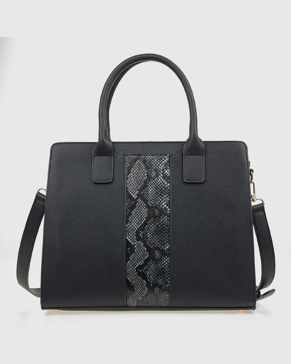 Το snake print στο κέντρο της τσάντας χαρίζει δυναμισμό στο design, ενώ η