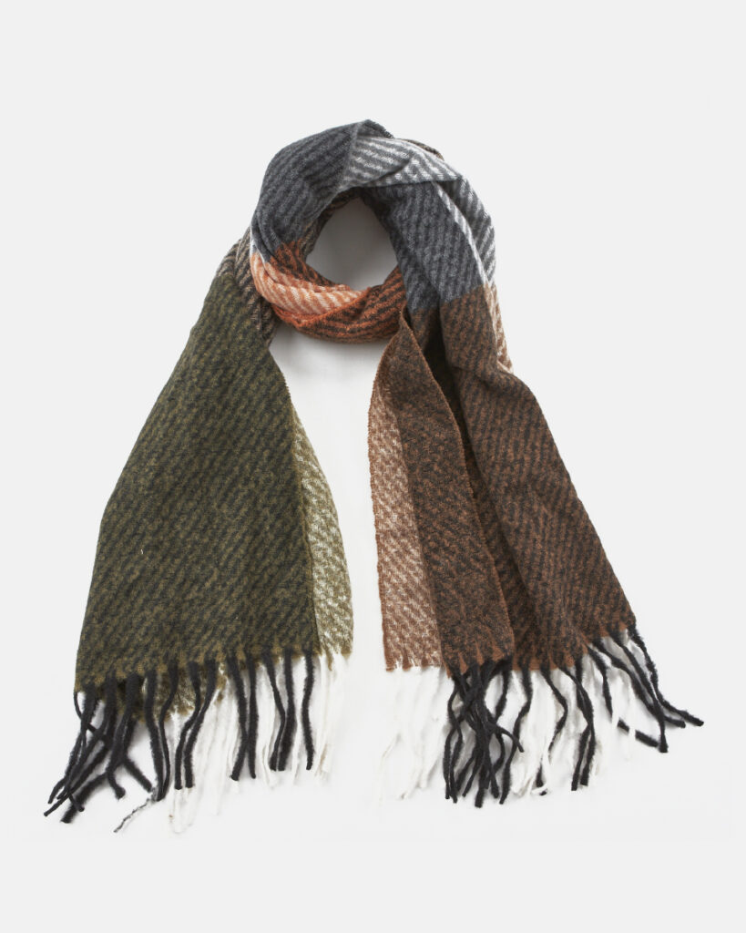 Ένα στιλάτο κασκόλ από τη συλλογή της Verde, με μοντέρνο μοτίβο καρό σε γήινους και ψυχρούς τόνους που απογειώνει κάθε χειμερινή εμφάνιση. Το απαλό του ύφασμα και το cozy φινίρισμα του προσφέρουν ζεστασιά, ενώ η μεγάλη του διάσταση επιτρέπει πολλές παραλλαγές στο δέσιμο. Ιδανικό για casual και smart looks.