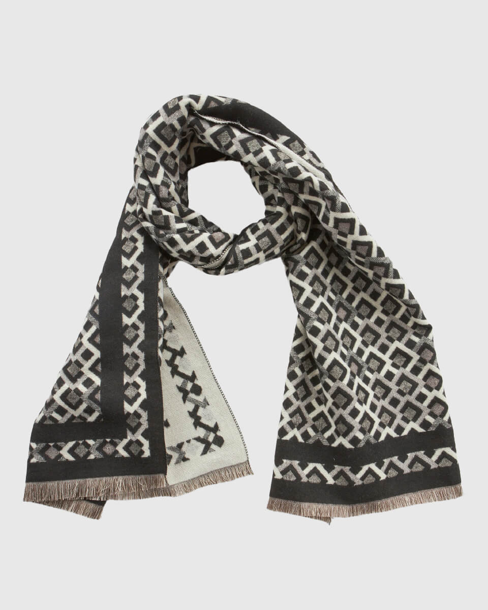 Ένα εντυπωσιακό κασκόλ με έμπνευση από παραδοσιακά μοτίβα, σε μοντέρνα εκδοχή από τη Verde. Ο συνδυασμός ρομαντικών τόνων και γεωμετρικών σχημάτων το καθιστά ξεχωριστό αξεσουάρ για το χειμώνα.