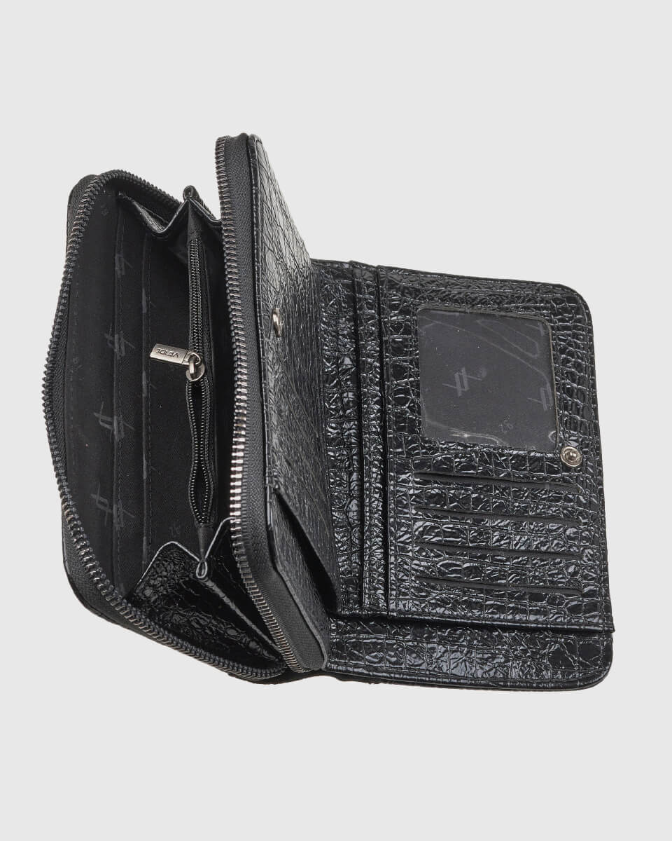 Το γυναικείο πορτοφόλι Verde με υφή κροκό και λεπτομέρειες