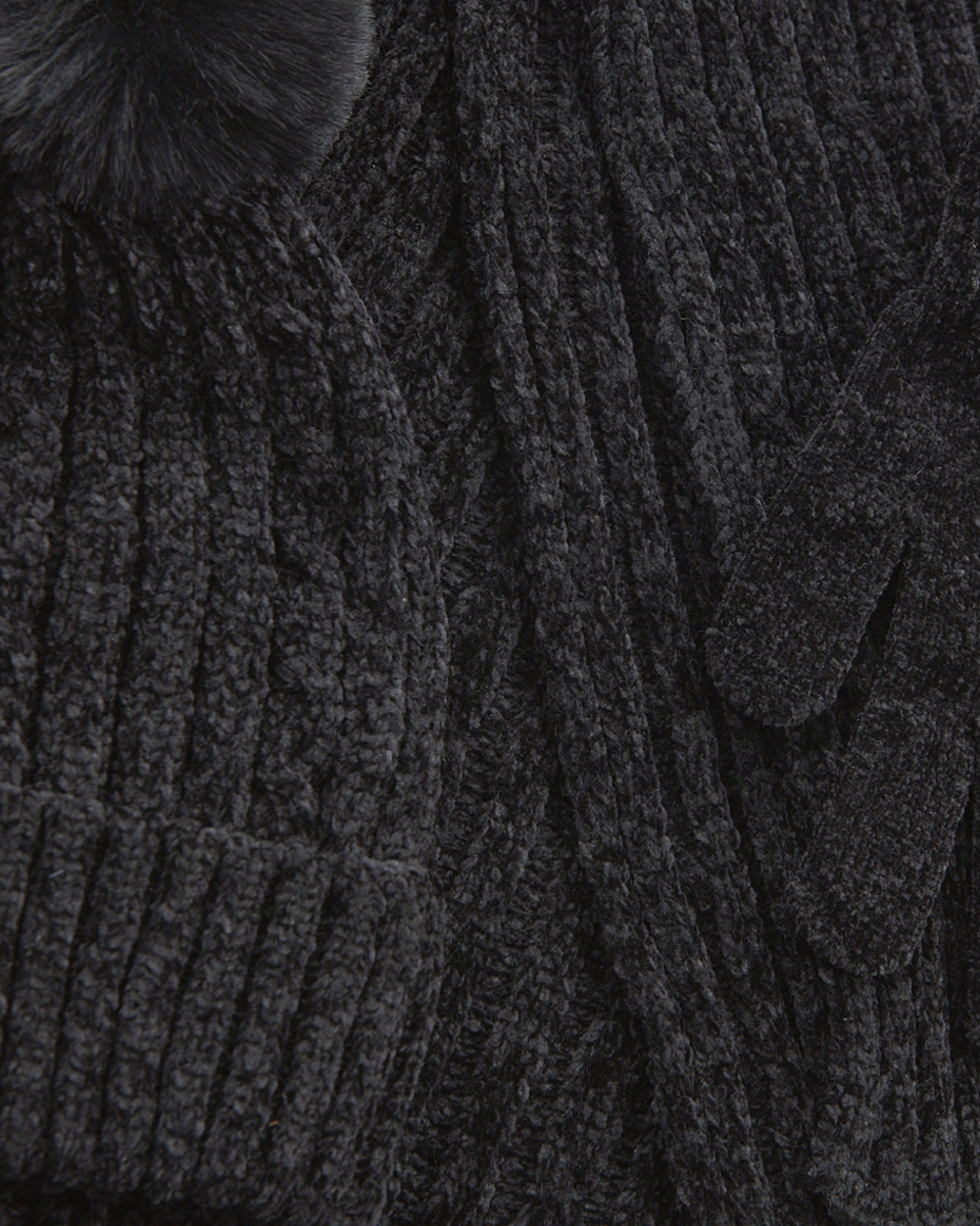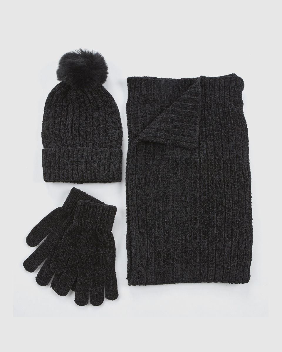 • Περιλαμβάνει: Κασκόλ, σκουφί με pom-pom και γάντια