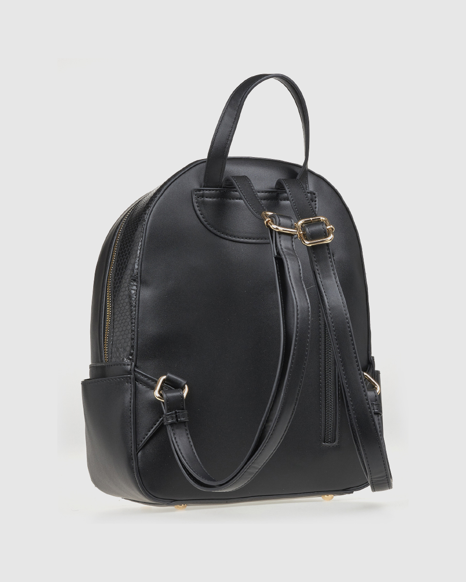 • Εξωτερικό: Ανάγλυφη λεπτομέρεια με αγκράφα και πίσω θήκη με φερμουάρ
